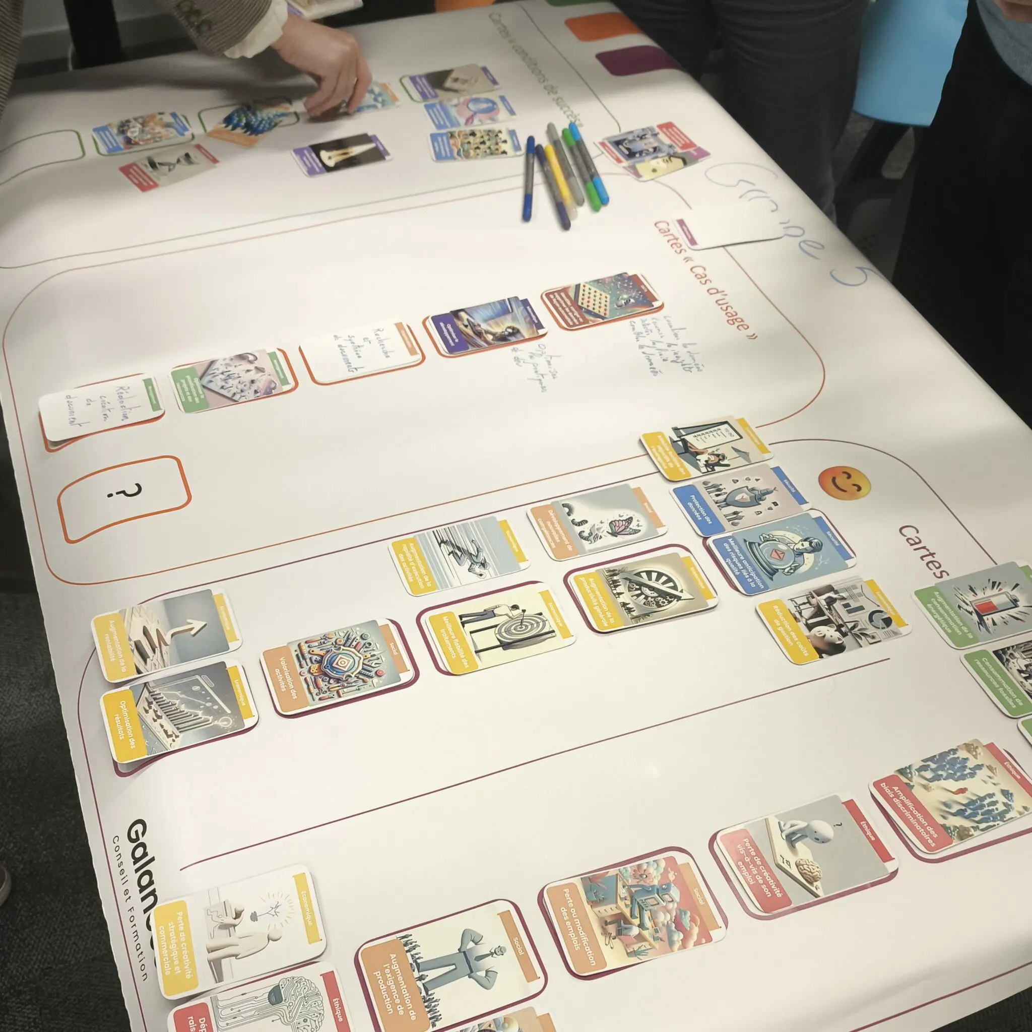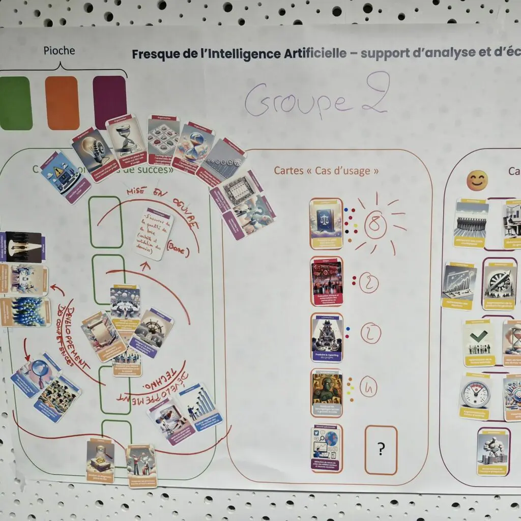 Das KI-Fresko® ist ein geselliger, kollaborativer Workshop, der von Galances Conseil & Formation entwickelt wurde und darauf abzielt, die Auswirkungen der künstlichen Intelligenz im eigenen Unternehmen besser zu verstehen.